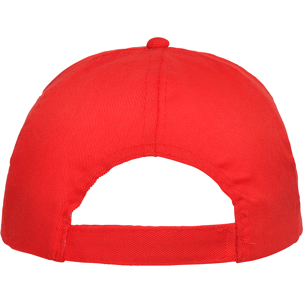 5-панельная бейсболка. Два обшитых вентиляционных отверстия. Козырек с 4 отделочными строчками. Внутренняя лента для защиты от пота. Размер регулируется с помощью застежки на липучке велькро